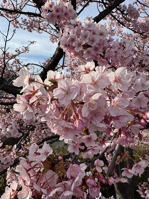 河津桜はソメイヨシノよりも濃いピンク色が特徴で、遠くから見てもとても華やか。