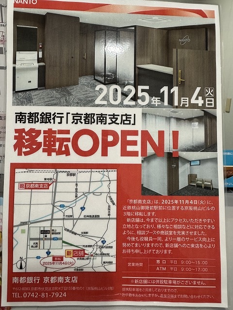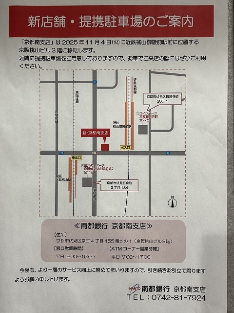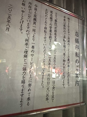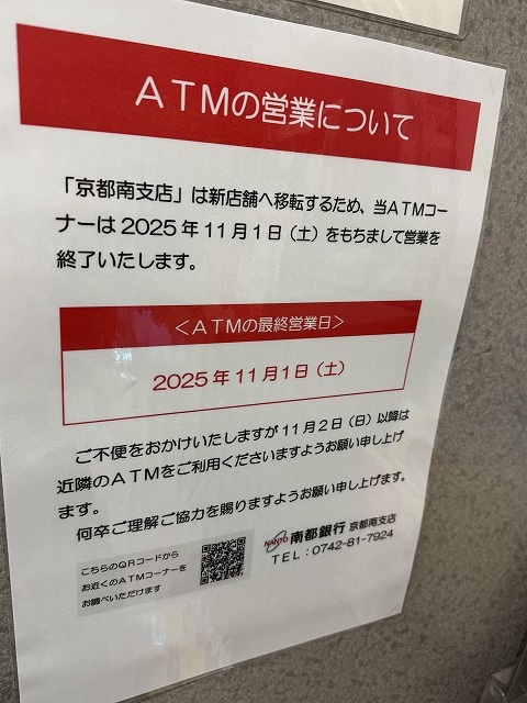 以前は近鉄東寺駅近くにありましたが、先月ATM行ったときに”11月1日で営業終了”と書かれてありました。