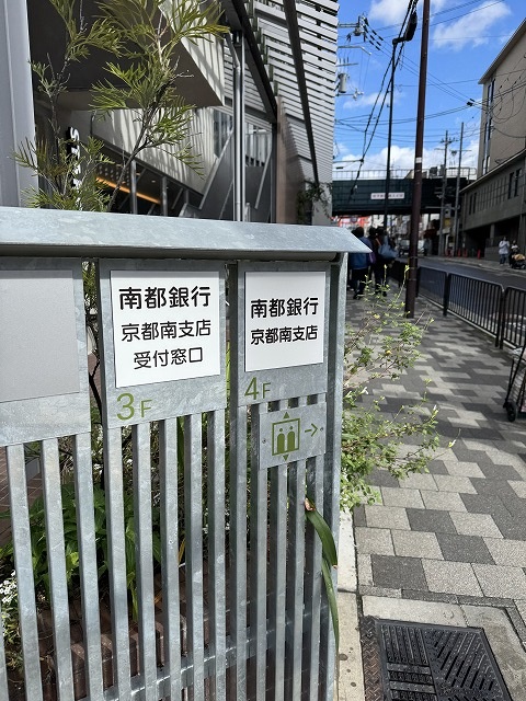 3階「南都銀行京都南支店受付窓口」、4階「南都銀行京都南支店」と書かれてありました。