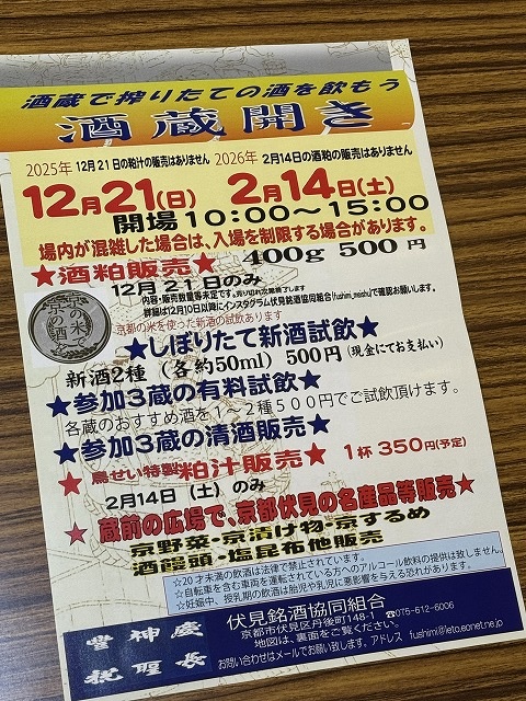 しぼりたて新酒の試飲(2種、各約50ml500円現金)ができたりと、