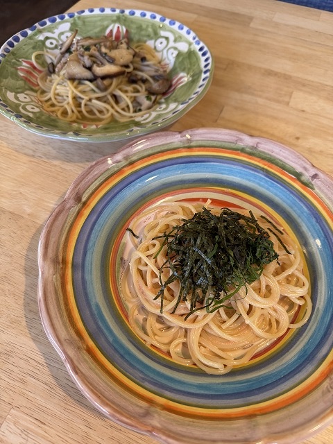 しょうゆ風味のスパゲティと、たらこスパゲティの2種類。