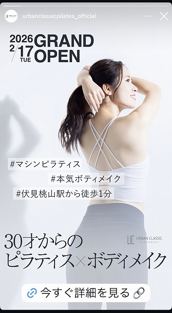 どちらにしてもオープンはまだ来月なので、気になる方は【URBAN CLASSIC PILATES伏見桃山店(アーバンクラシックピラティス伏見桃山店)】さんのホームページやInstagramをチェックしてみてください^^