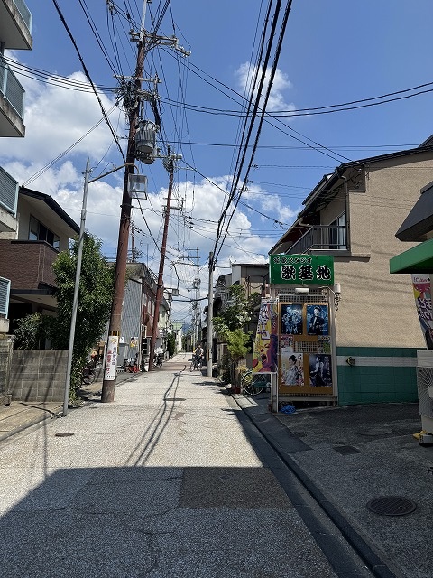大通りからはちょっと入ったところで、「歌基地」さん入口の横にあります。