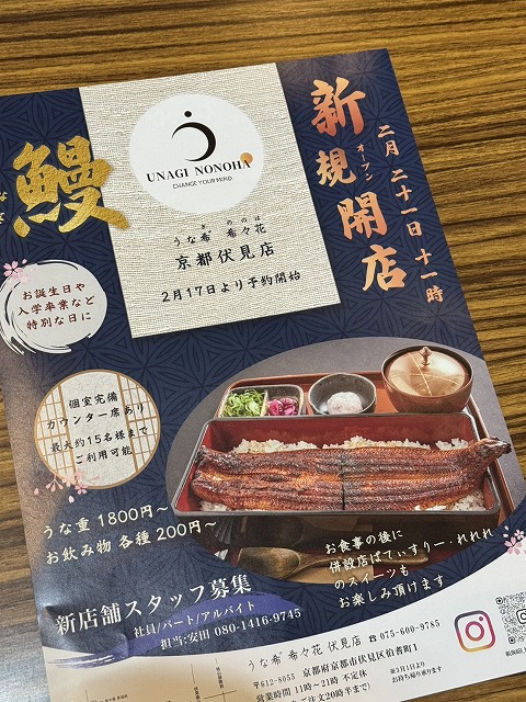 鰻屋【うな希” 希々花(ののは) 京都伏見店】