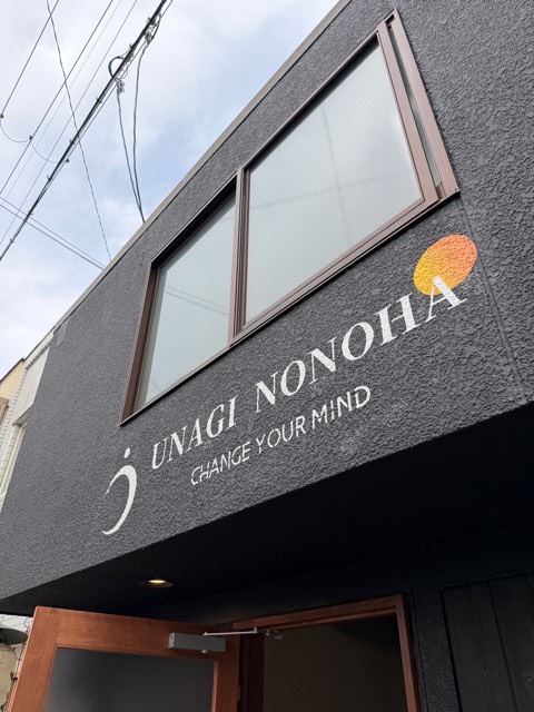 黒を基調にした落ち着いた雰囲気で、「UNAGI NONOHA」というロゴが目印です。