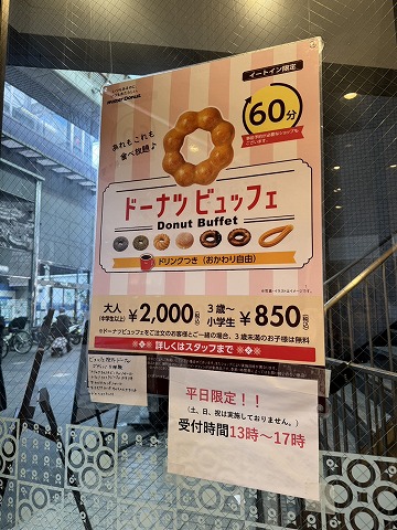 ちなみにここのミスドでは、平日限定13時~17時で「ドーナツビュッフェ」もありますよ!