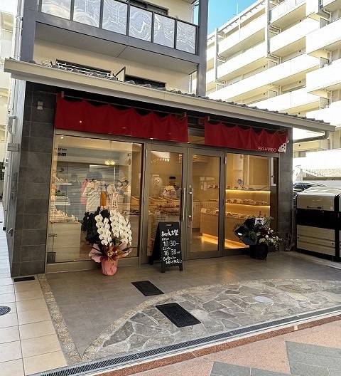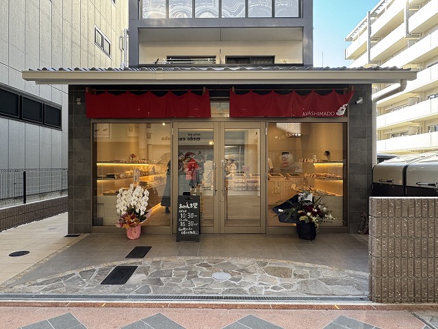 店頭の和風な暖簾にローマ字で「AWASHIMADO」と