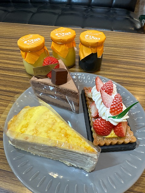 今回ゲットしたのは、イチゴタルト・チョコレートケーキ・ミルクレープ・贅沢プリン・竹炭プリンです!