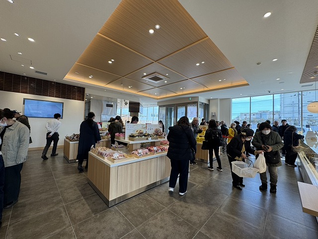 生地を焼いている様子や、焼き上がったカステラをカットしている様子など、焼きたてカステラの販売や製造工程が見られるんです。