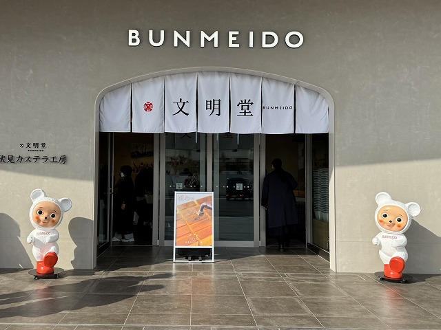 入口には文明堂の仔グマちゃんが迎えてくれて、写真スポットにもなっています。